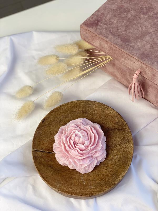 Соевая свеча пион с эфирными аромамаслами 8х3.5см сotton