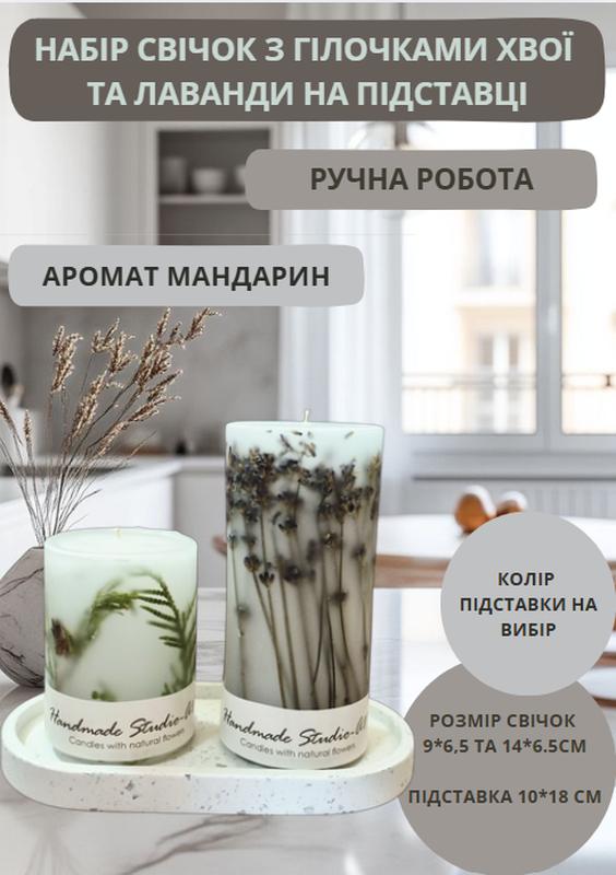 Набір свічок ручної роботи свічки декоративні ароматичні у наборі з 2 шт на підставці з гі...