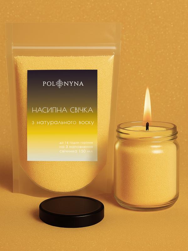 Насипна свічка у баночці із пальмового воску жовта без аромату, з ґнотом і тримачем на 3 н...