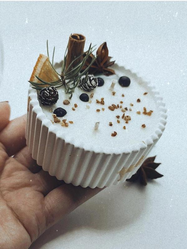 Новорічна соєве свічка, свічка з соєвого воску з новорічним декором