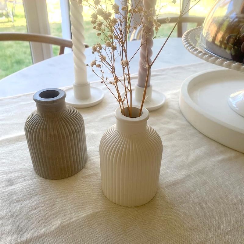 Ваза декоративна з гіпсу. Справжня знахідка для перфекціоніста та мінімаліста. Прикрасить ваш інтер'єр, ідеально підходить для сухоцвітів. Розміри: висота 10 см діаметр 6.8 см, шийка 2.1 см Колір білий Колір виробу може трохи відрізнятися від фото