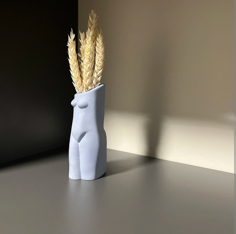 Ваза декоративная из гипса . Настоящая находка для перфекциониста и минималиста. Украсит ваш интерьер, идеально подходит для сухоцветов. Размеры : высота 13 см, диаметр 6 см , глубина 10 см Цвет : голубой Цвет изделия может немного отличаться от фото