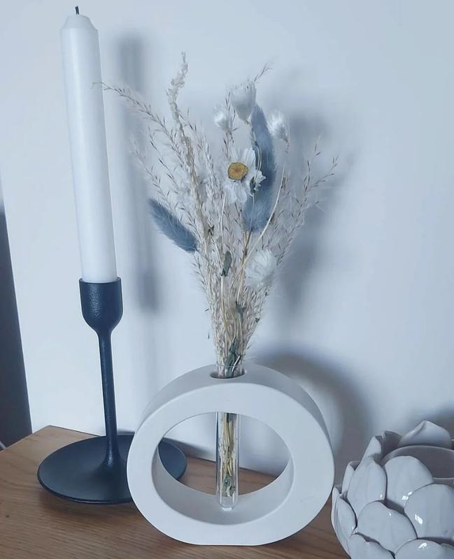 Ваза в стиле минимализм. Прекрасная деталь интерьера. Если ты любишь эстетику и предпочитаешь минимализм. Ваза подойдёт в качестве подарка . Украсит собой любое пространство. Идеальное сочетание с сухоцветами и живыми цветами. Материал высокопрочный гипс. Ваза круглая цена вазы без колбы 180 грн колба +35 грн Высота основания 11 см Ширина основания 13 см Цвет : серый Цвет изделия может немного отличаться от фото