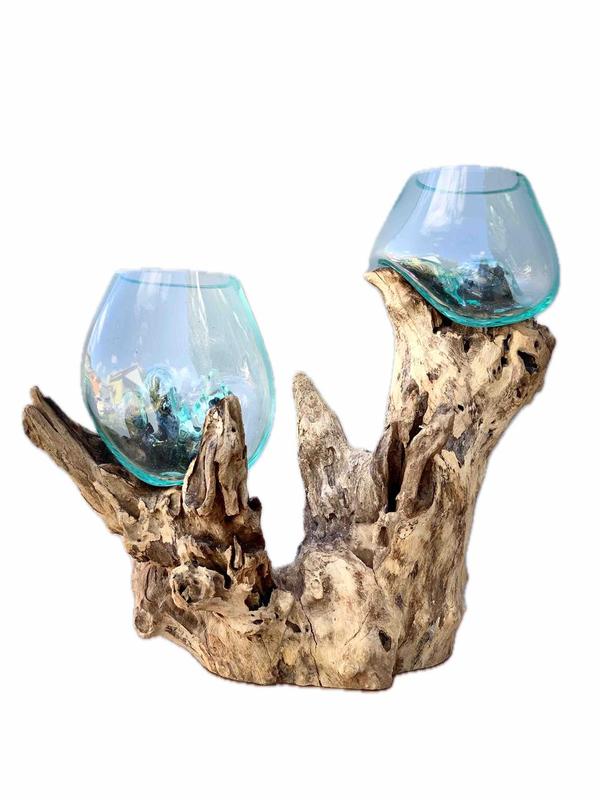Ексклюзивна ваза ручної роботи, подвійна ваза на корязі.Кожна в єдиному екземплярі, стильна та неповторна.Колби-скло, основа-дерево природної природної форми,практично без оброблення.Прекрасно виглядають із сукулентами! Використовуються як акваріуми для невеликих рибок. Предмети інтер'єру з природних матеріалів, які особливо популярні та популярні.Такі речі подарують дому неповторний шарм і затишок! Країна-виробник: Індонезія,ручна робота. За запитом висилає додаткові фото та відео. Відсилання на день замовлення!