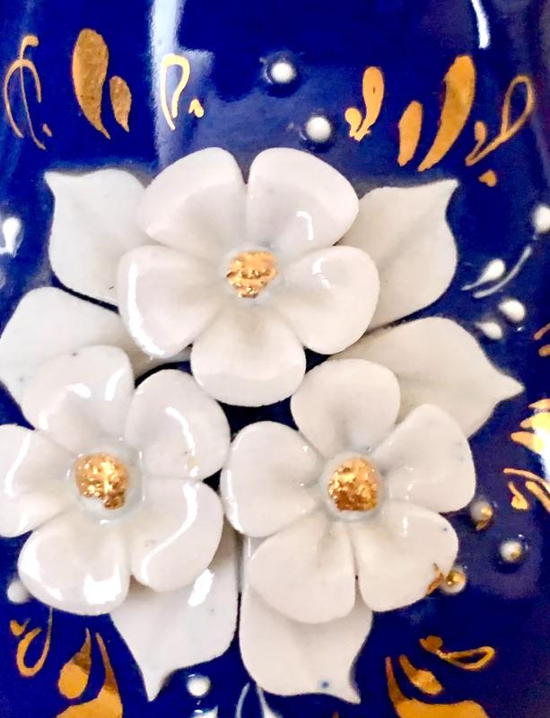 Витончена вазочка конвалія з тонкої порцеляни, прикрашена ліпленням і обробкою золотом. Висота 8,5 см