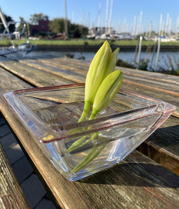 Плоска масивна скляна ваза, ледь помітного пудрового відтінку, в стилі посуду ********* Ємність підійде для флораріуму, моссаріуму. Можна поставити маленький букетик, або робити незвичайні композиції. Фантазуйте, я спробувала. Якщо набридне творити - покладіть салатик. Розміри: 12,5х7,5 см. Стан: б\у, хороший. З Нідерландів. Код 0328. Заходьте ******** в інстаграм. Сонячне Варення. Дивіться мої інші оголошення, пропоную різні свічники, сяючі пляшки, ліхтарі. Шукайте оголошення по назві - Сонячне Варення.