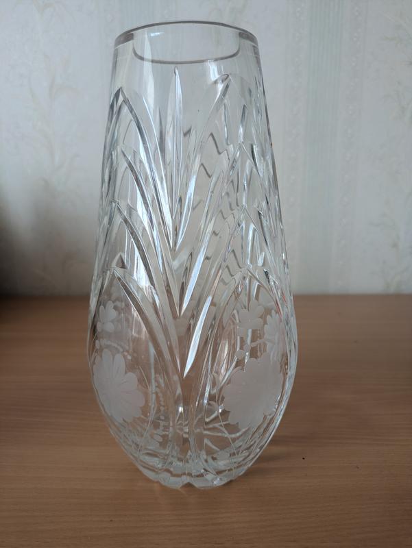 Вінтажна кришталева ваза Важка, має гравіровку квіти Висота 24 см, діаметр верха 7.7 см, діаметр низу 8 см, у найширшому місці приблизно 11 см Дуже гарний стан, незначні подряпини у нижній частині