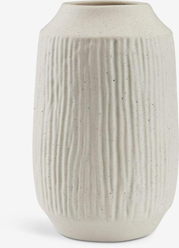Доломітова ваза лляного кольору з текстурованою поверхнею. Ваза має елегантний ребристий дизайн, які додають їй унікального вигляду. Ідеально підходить для декору вашого інтер'єру. Діам. 21 см, вис. 33 см Характеристики Матеріал Доломіт Розмір Діаметр: 21 см, висота: 33 см Колір Лляний Використання Для використання в приміщенні