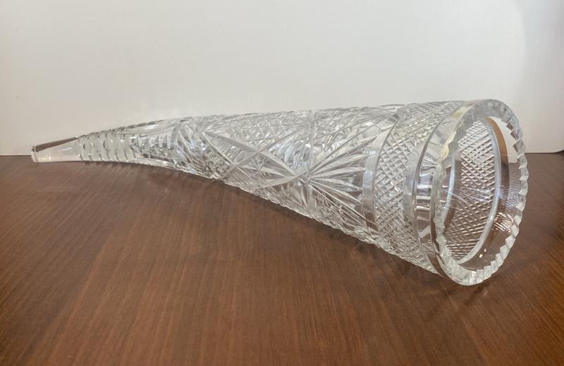 Символ достатку — величезний ріг із радянського кришталю. Довжина 37 см, горловина 9 см, вага 985 грамів. Стан чудовий, по фото. Високодружне оригінальне пластику, якісне детальне ручне різання візерунків, що відповідають найвищим стандартам якості СРСР. Є сліди побутового занурення у формі подряпин і мікроколів закінчення, показані на фото. У разі потреби збросу додаткові фото та відповість на питання, що цікавлять. Шикарний недорогий подарунок або чудовий примірник у колекцію кришталю, красива вінтажна річ в інтер'єр. Якісне паковання за мій рахунок. Дивіться інші свої лоти. Купівлі комбінують, що неабияк вподобає витрати на доставку. Лот перебуває в Києві, можлива особиста зустріч у Києві (самовивіз із Коцюбінського).