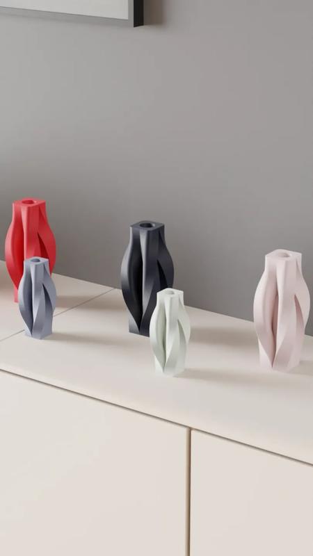Сучасні кручений ваза. Елегантний естетичний декор. Додайте нотку сучасної елегантності до свого інтер'єру з цією унікальною скульптурною вазою. Плавні, органічні форми додадуть вишуканості будь-якому інтер'єру. Ця ваза ідеально підходить для однієї квітки або невеликої композиції та стане стильним акцентом на стільниці, полиці або стільниці. Функції: Елегантний, сучасний дизайн із художньою, плавною формою Ідеально підходить для мінімалістичних квіткових композицій чи декоративного використання. Оптимізований для 3D-друку, має стійку основу та плавні вигини. Масштабованість до різних розмірів для відповідності різним стилям декору Золотий, зелений, білий, оливковий, синій, червоний, білий в крапочку, беж, сірий, чорний, рожевий, сірий, глина, эсть також білий , чорний, сірий матові ! Якщо цікавлять інщі кольори запитуйте. Розміри. 130 мм - 47 мм - 48 мм ціна 165 гр 180 мм - 66 мм - 67 мм ціна 270 гр 220 мм - 80 мм - 82 мм ціна 450 гр *****************************************************************