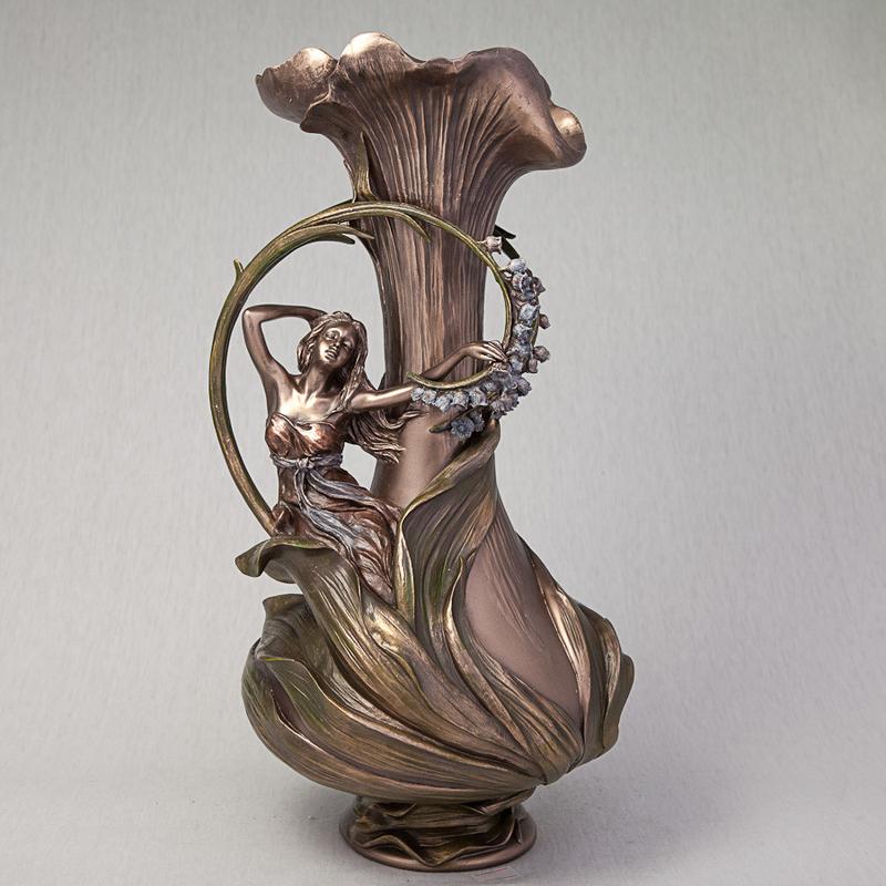 Ваза Veronese Дівчина в гіацинтах 10162 Висота 39 см Матеріал: полістоун покритий бронзою. Гіацинт — символ любові, щастя й вірності. Вибираючи як подарунок вазу "Дівчина в гіацинтах", Ви, безсумнівно, подаруєте її власниці частинку тепла. Завдяки надійному пакованню, виготовленому з пінопласту з заглибленнями для найменших деталей, Ви можете бути впевненими в збереженні під час транспортування. Виріб виготовлений з полістоуну (штучний камінь) і покритий бронзовим напиленням; упакований у подарункову коробку, що надає йому престижності та розкоші.