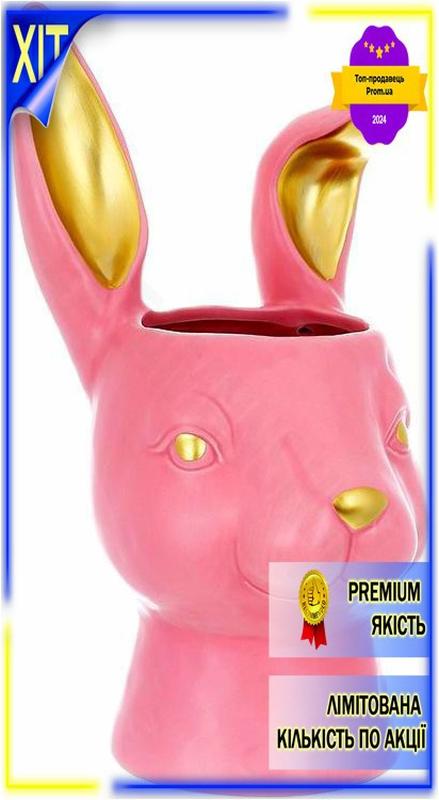 Dm керамічна ваза кролик специфікація 2.2 із золотими вушками 31 см для квітів та декору і...