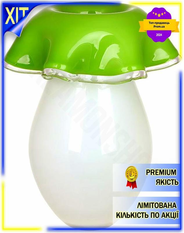 Dm ваза скляна гриб специфікація 2.2 зелена та біла ручна робота для квітів та декору інте...