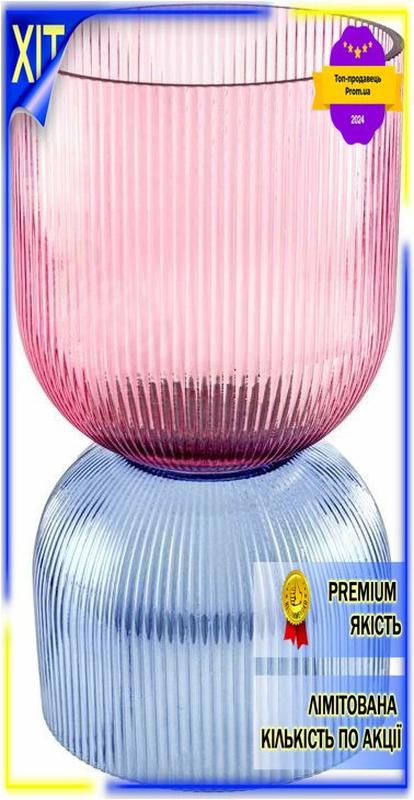 Dm стеклянная ваза ariadne спецификация 2.2 для декора интерьера розовая с голубым высота...