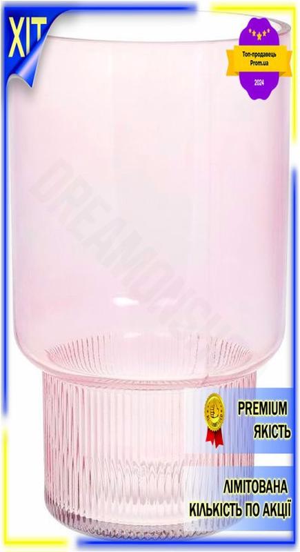Dm декоративна ваза ancient специфікація 2.2 glass світло-рожева для квітів та інтер'єру с...