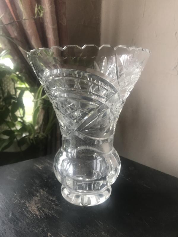 Справжній німецький кришталь найвищої якості. Ручна ограновування, товстостінна. Є маленький скольчик по верхній кромці(див. фото)-враховано в ціні виробу. Вінтаж!