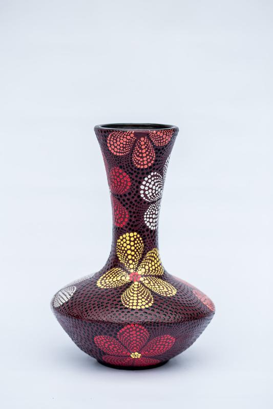 Ваза керамічна,декоративна. Висота 40 см. Країна виробник - Індонезія,ручна робота. Малюнок нанесений в ручну, точкової розписом.основний фон - чорничного кольору. За запитом,висилаємо фото і відео "в живу". Відправка в день замовлення!
