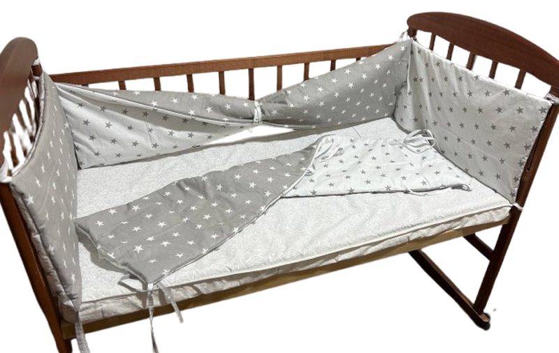 Защита бортики в детскую кроватку на 4 стороны бампер в детскую кроватку 4 части серый