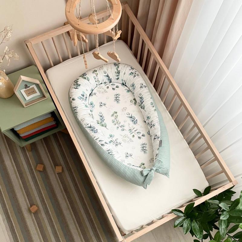 Кокон гніздо для новонароджених для сну, розмір 90х65 см, "nordic" евкаліпт м'ятний топ