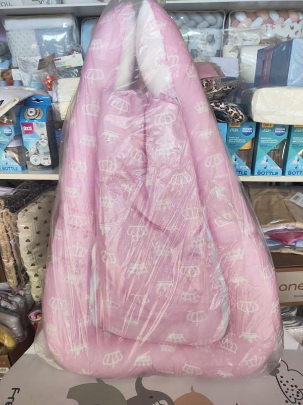 Двусторонний кокон-гнездечко для новорожденных детей – удобный и безопасный аксессуар для ухода за младенцем. Подходит для малышей от рождения до 6-8 месяцев (в зависимости от длины спального места). * Материал: 100% польский хлопок * Наполнитель бортиков: холлофайбер * Наполнитель матраса: синтепон плотностью 300 гр/м2 * Стандартный размер спального места 60*30 см. * Общий размер кокона 75*45 см.
