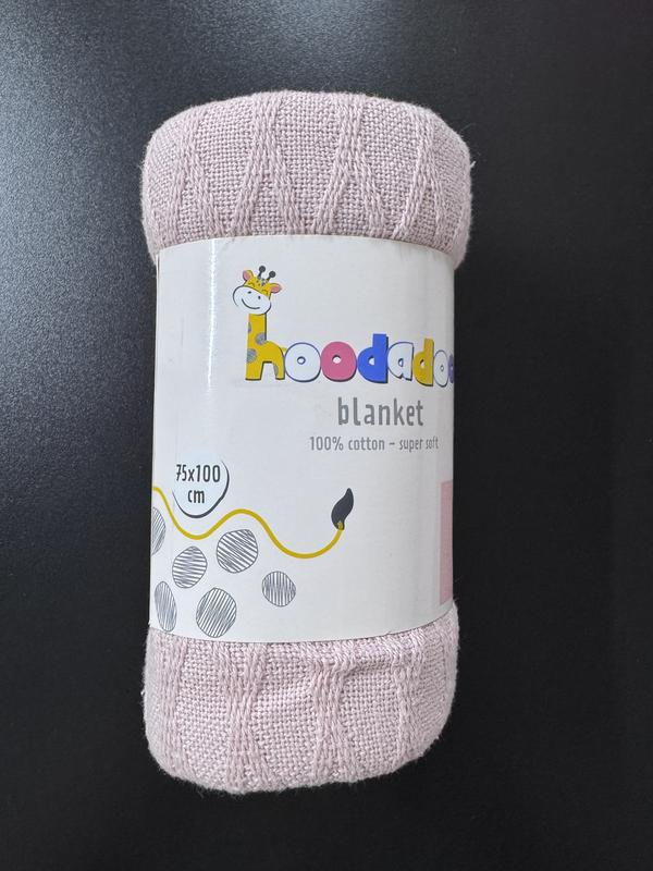 Ковдра дитяча, супер мʼяка Hoodadoo 100% бавовна Розмір 75*100 см Підійде для коляски і для ліжечка Колір: ніжно-рожевий