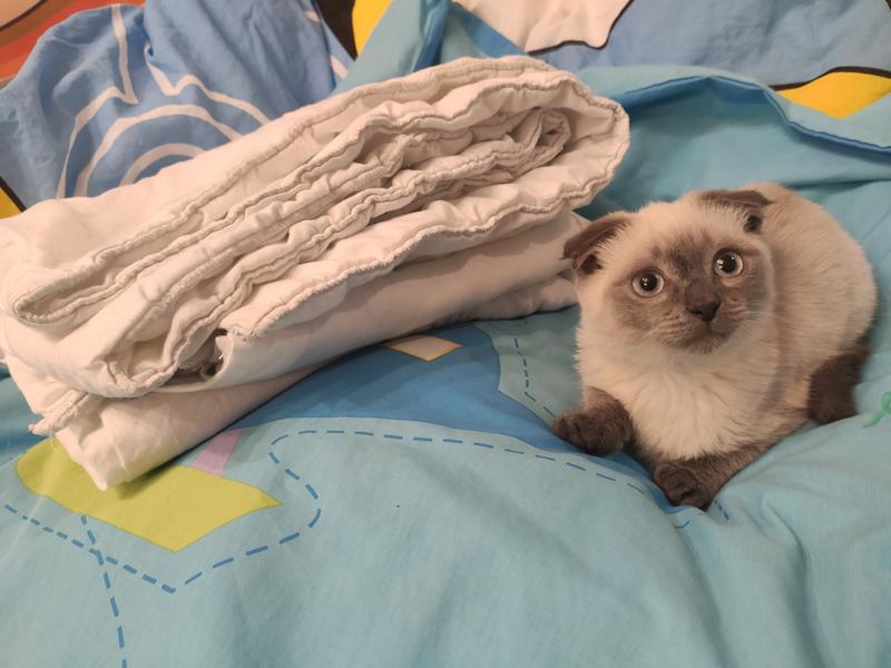 из нюансов одеяла - нужно постирать, потому что ребенок забавлялся воздушным пластелином и запачкался. Он хорошо выстегивается в стиральной машинке. Продаю вместе с пододеяльником к нему, имеет не идеальное, но хорошее состояние. не порвано ничего и не протерто.
