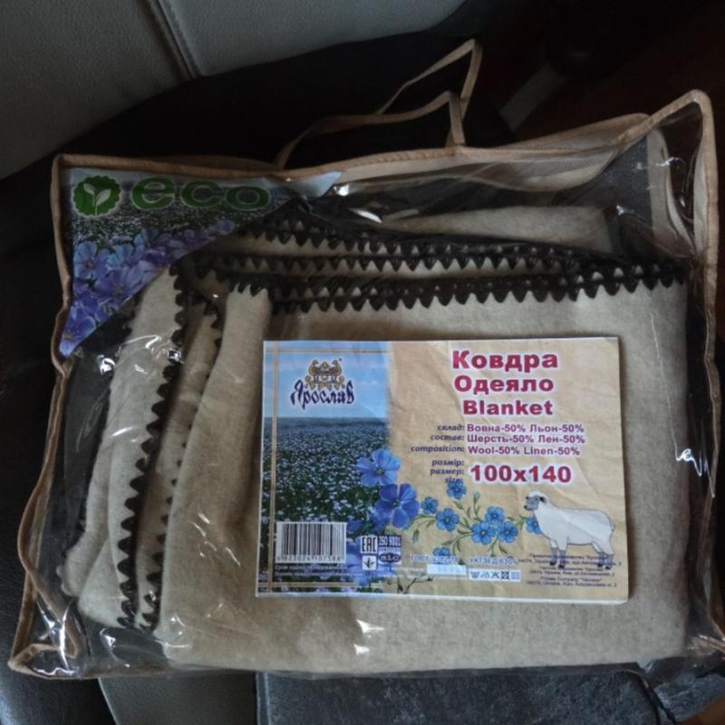 нова ковдра Ярослав состав: 50% шерсть и 50% лён размер 100х140