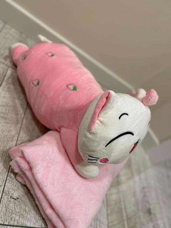 Іграшка-плед-подушка-муфта 🐱 М'якенька іграшка😊 Розмір Іграшки 70х40см Може використовуватись як подушка та в середині іграшки знаходиться тепленький плєд розміром 120х150см.✅ Гарно підійде на подарунок 🎁