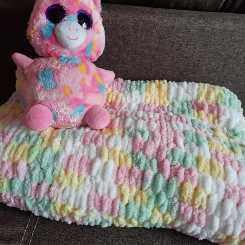 Плюшевий плед із пряжі alize puffy дуже м'який і теплий. Розмір 60×50