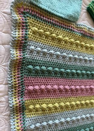 Вʼязаний плед дитячий, можна в коляску та три іграшки - ручна робота, розмір пледа 90/70
