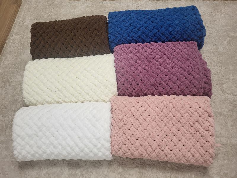 Плюшевий плед ручної роботи з пряжі Puffy Alize, розмір 80×105 см. Можливе виконання у вашому кольорі та розмірі. Плед ідеальний, як подарунок або ж покупка для дому чи для свого малюка. Супер м'які, супер якісні та створені для кожного клієнта індивідуально з величезною любов'ю. Зігріє восени і холодною зимою. Плед - це супер подарунок, якому буде радий кожен. Про Пряжу: Турецьке виробництво. Матеріал: мікрополіестер. Пряжа гіпоалергенна, а значить підійде малюкам з перших днів життя. М'яка, як плюшева іграшка, повітряна та тепла. Догляд за пледом: 1. Виробники пряжі рекомендують ручне прання, але допускається прання у пральній машині в делікатному режимі з віджиманням не більше 400 оборотів. 2. Сохне плед дуже швидко, але не допускається сушка на батареї або застосування праски. 3. Плед бажано сушити на горизонтальній поверхні, так як може трохи розтягнуться. Термін виконання роботи розраховується индивидульно. Залежить від розміру пледа, завантаженості і обраного кольору від 2 до 7 днів. Можна виконати в будь-якому кольорі і розмірі під замовлення.