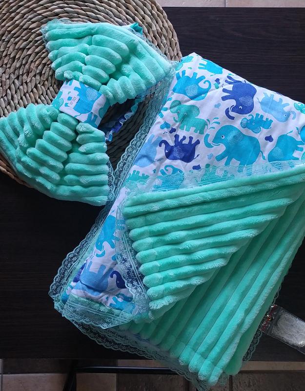 Утеплений плед - конверт на виписку малюка з пологового будинку і, в наслідку, на прогулянки. Верхня тканина - плюш, бавовна ( виробництво Туреччина), внутрішня - ситець ( ситець виробництво Польща), утеплювач - натуральний матеріал "хлопкокон". Бант двосторонній на резинці.