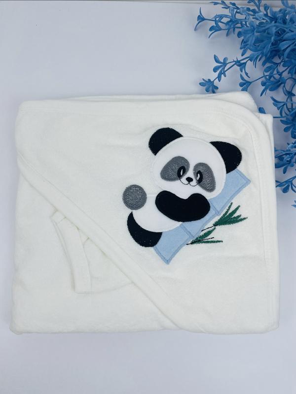 Махровий рушник для новонароджених з куточком панда для хлопчиків блакитний
