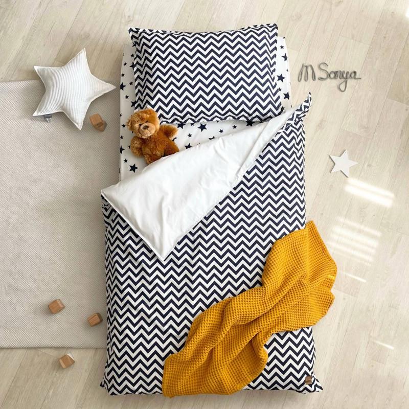 Комплект постільної білизни ясла поплін зигзаг синій