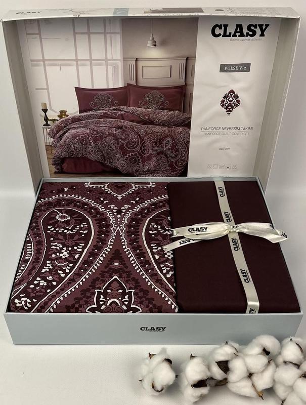 Постільна білизна від ТМ "CLASY" виготовляється виключно зі 100% бавовни без додавання синтетичних волокон. Гарний дизайн, ви зможете вибрати для себе той, що вам підійде ідеально. Ранфорс виготовляють із довгих міцних волокон бавовни. Головною відмінністю тканини ранфорс є вдосконалена технологія плетіння. Презентабельне паковання. Материал: Ранфорс(100% хлопок). Пододеяльник: 200х220см(1шт). Простирадло: 240х260см(1шт). Наволочки: 50х70см (2шт). Виробник: CLASY (Туреччина).