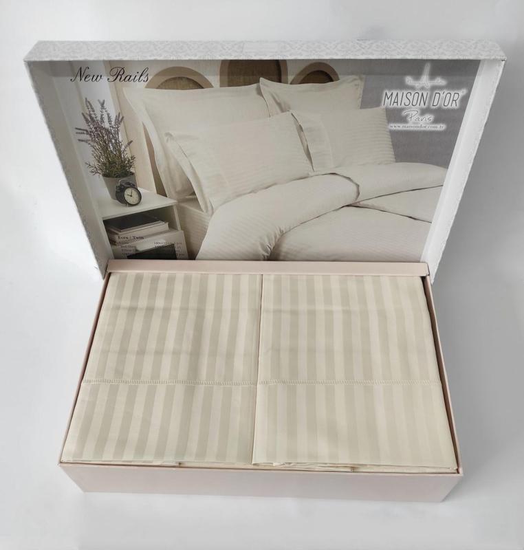 Постільна білизна maison d'or сатин страйп сімейний new rails ecru