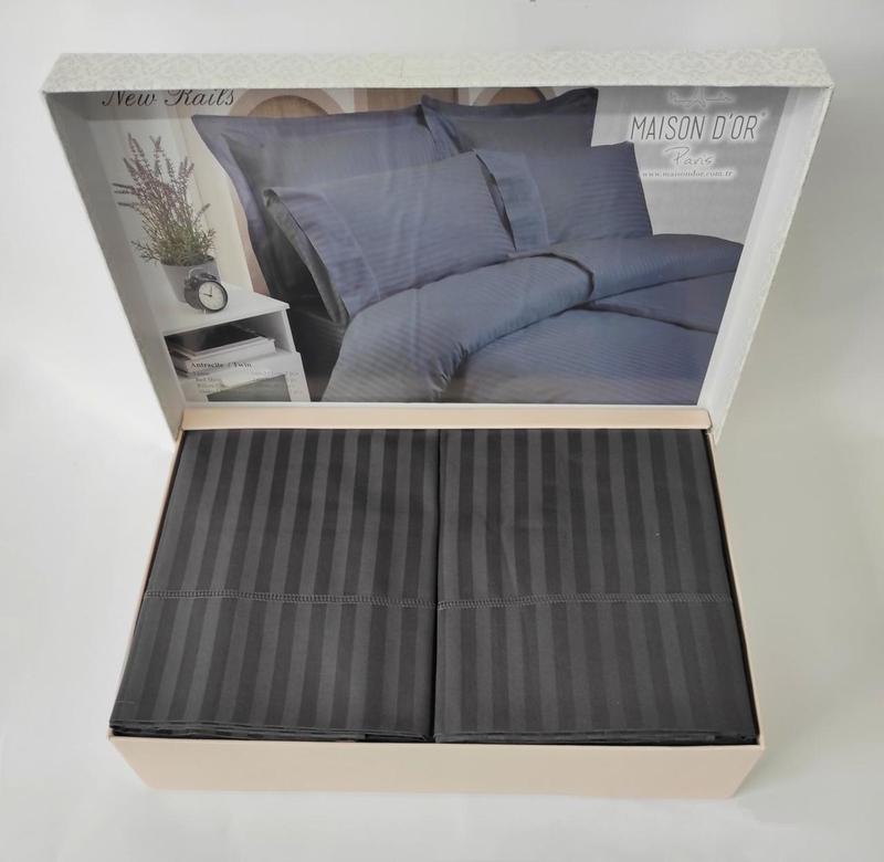 Постельное белье maison d'or сатин страйп 160х220 rails anthracite