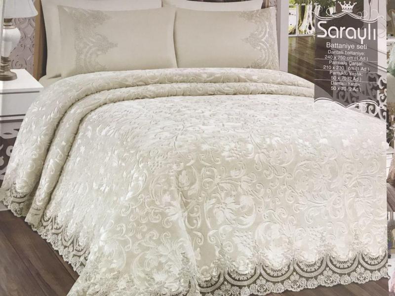 Плед і постільна білизна estima з французьким мереживом євро розмір кремовий