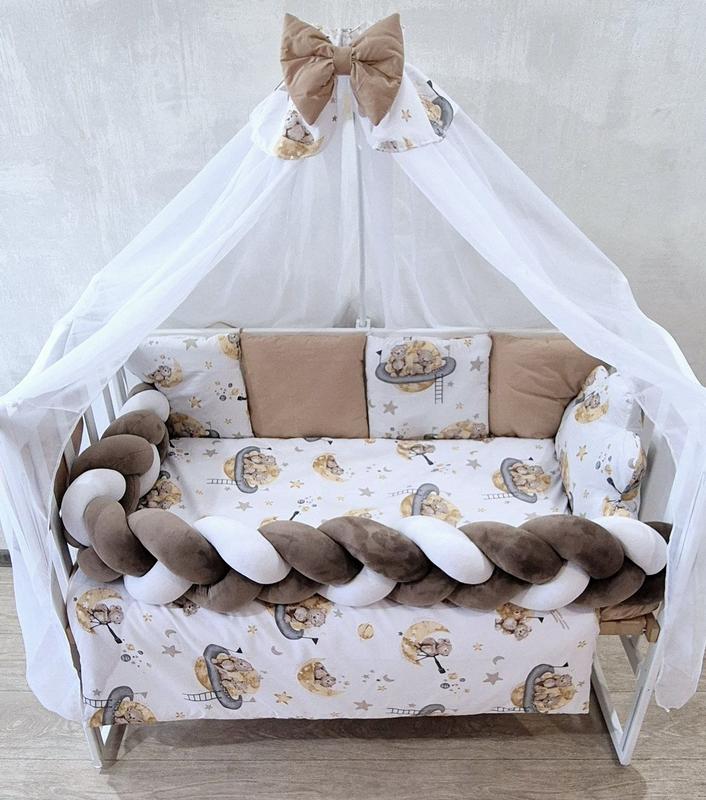Нові набори відшито Балдахін Бант Коса 180 см Бортики-подушки 4 шт Хмаринка Простирадло Підковдра Одіяльце Кишеня Бавовна 100%