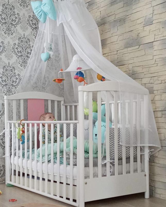 Якісний комплект для дитини 0+ унісекс в дуже гарному стані. В комплект входить простирадло, ковдра-плед, подушка ортопедична, 8 подушок бортиків , балдахін з мʼякою прикрасою. Дуже красивий, якісний, ніжний. Колір, тканина, дизайн додають особливого затишку.