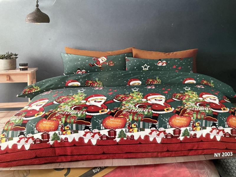 Полуторний комплект постільної білизни Новорічний малюнок Розміри: Підодіяльник: 150*215 Простирадло:150*220 Наволочки 70*70(2шт) на гудзичках Тканина бязь ,якість відмінна