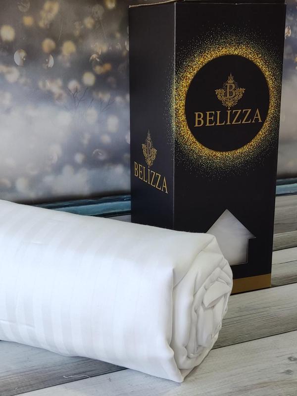 Сатинове простирадло в смужку 280 на 280 см з наволочками belizza home біле