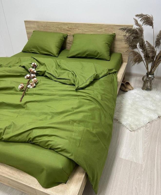 Полуторне простирадло однотонний 150х220 оливковий хакі зелений бязь голд люкс віталіна