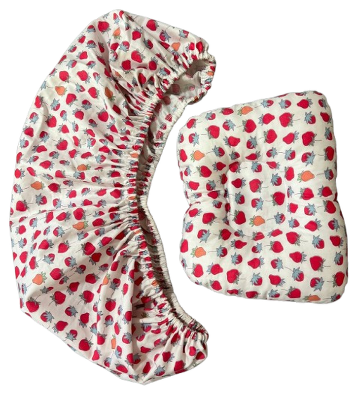 Комплект складається з 2 х предметів: - Простирадло на матрацик 80х40 призначене для всіх видів дитячих колясок. - Подушка ортопедична, призначена для підтримки шийного відділу та головки немовляти. Склад: бавовна 100%