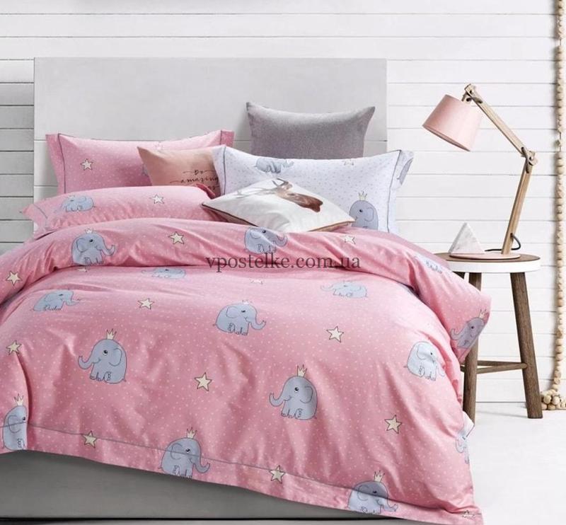 Простирадло у ліжечко для дівчаток зі слоненятком в короні. Розмір 110/140 см. Тканина сатин, 100% бавовна.
