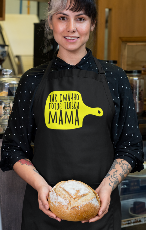 Фартух чорний кухонний з принтом "так смачно готує лише мама"