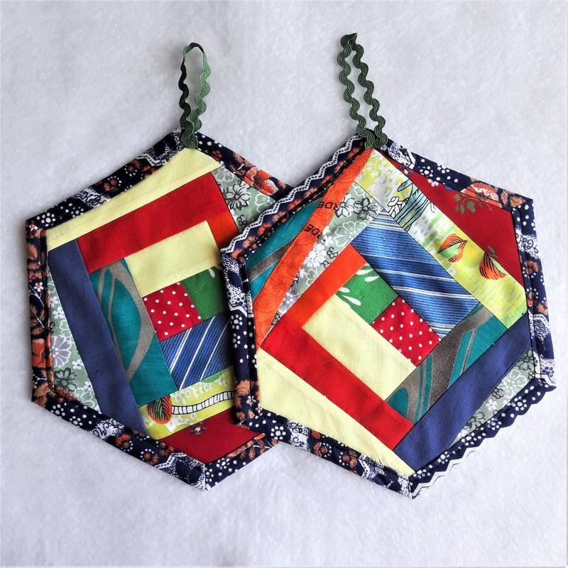 Набір з 2 прихваток для гарячого 23 х 20 см, виготовлених в техніці печворк. Спинка виготовлена з 100% бавовни. Прокладка з бавовняного ватину. Для зручності виріб має підвісну петлю, і його можна використовувати як підставку під гаряче. Прихватки можна прати в машині при температурі 30 ° C. Всі мої вироби виготовляються в приміщенні без диму. Дякуємо за відвідування мого магазину! Щасливих покупок!