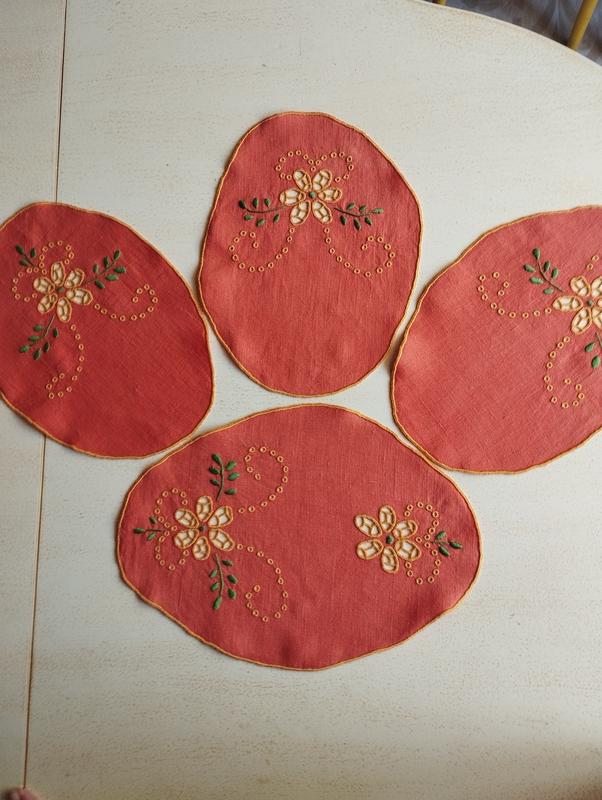 Знижка🤩вінтаж👌🏵️набір, сет яскравих теракотових старовинних лляних серветок з вишивкою...