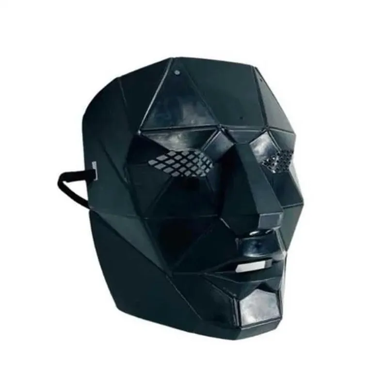 Маска розпорядника із серіалу Гра в кальмара Маска провідного (розрядника) із серіалу "Гра в кальмара" — приваблива з усіх боків конструкція, володар якої буде рулити всім процесом ігор. Згідно зі сценарієм фільму, ця людина відіграє провідну роль в ігровому процесі та контролює дотримання правил. Він же їх оголошує перед початком кожної гри. Він має власний кабінет з архівами, у яких міститься докладна інформація про всіх учасників. Крім того, на розпоряднику лежить величезна відповідальність, адже він відповідає за безпеку всіх глядачів (повідомлення найбагатших людей планети). З такою маскою розпорядника з "Ігри в кальмара" користувачі можуть організувати фанатські розваги, з випробуваннями, охороною та іншими атрибутами, що максимально схожі на дії в серіалі. Представлений виріб виготовляється з міцного, легкого пластику. Модель чудово тримається на голові та не злітає під час інтенсивних ігор. Провідний — відповідальна посада, і він має бути один. Завдяки такому підходу можна імітувати будь-яку гру з кіно, роблячи процес оригінальним. Основні характеристики: Матеріал: якісний пластик Колір: чорний Конструкція: маска