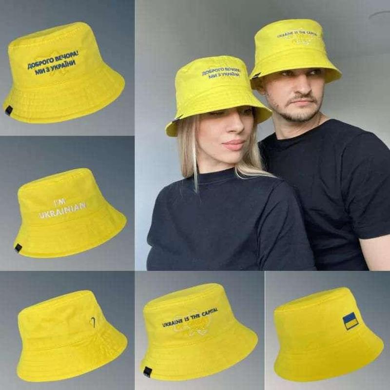 Панама патриотическая хлопковая с принтом жёлтого цвета 678000 Купить Панама патриотическая хлопковая с принтом на выбор – флаг Украины, I’m Ukrainian, Ukraine is the capital of great people, Сердце в патриотичных цветах, Доброго вечера – ми з України. В наличии полный ассортимент в любом количестве! Представлены в самых различных цветах: белые, бежевые, светлобежевые, бирюзовые, голубые, жёлтые, коралловые, красные, ментоловые, мятные, оранжевые, пудровые, розовые, серые, чёрные и другие. Есть в продаже несколько видов двусторонних панам с украинской символикой. Универсальнй размер!